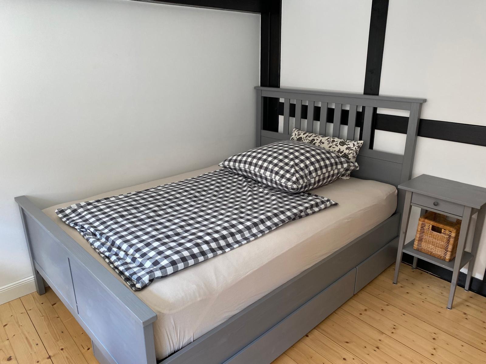 Diese Unterkunft besteht aus 3 Schlafzimmern, einem Wohnzimmer, einer voll ausgestatteten Küche mit einem großem Kühlschrank und einer Kaffeemaschine sowie 1 Badezimmer mit einer bodentiefer Regendusche, 2 Waschbecken und einem Haartrockner. Eine weitere Toilette, eine Waschmaschine und eine Abstellfläche für Fahrräder befinden sich im Anbau. Es werden Handtücher und Bettwäsche bereit gestellt.
